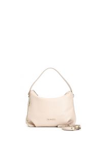 Hammered leather shoulder hobo bag. vertical front pocket with zip fastening. bag with shoulder strap.