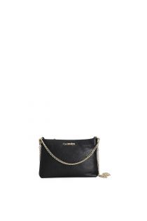 hammered leather clutch bag with chain straps black