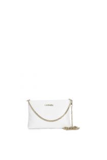 hammered leather clutch bag with double chain shoulder strap white