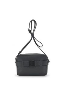 hammered leather-effect camera bag with belt motif and logo accessory black