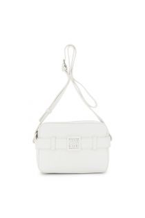 hammered leather-effect camera bag with belt motif and logo accessory ivory
