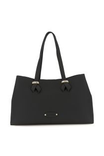 Elegant shopping bag in hammered leather-effect material with smooth contrasting details. handles with metal loops and tags with decorative rivets. roomy and versatile ideal for work and leisure. dimensions: 29 cm (length) × 23 cm (height) × 13 cm (depth)