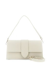 hammered leather flap shoulder bag with removable shoulder strap cream