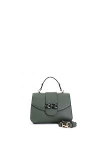 Hand bag with flap and painted clamp application. magnetic closure. removable shoulder strap.
