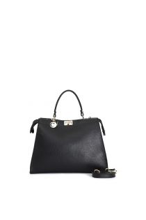 hand bag with flap with painted clamp application, remo shoulder strap black