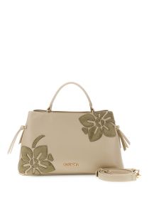 handbag in leather-effect material with floral applications kaki