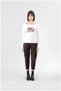 Long-sleeved t-shirt made of stretch cotton with a multi-technical print that reproduces a women's handbag.