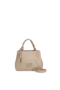handbag with braided handle and tone-on-tone rectangular logo tortora