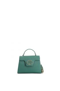 handbag with flap in saffiano with matching oval enamelled logo green
