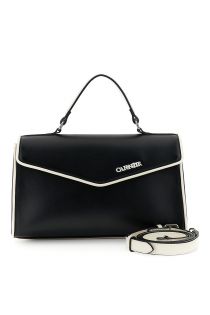 Elegant handbag with a structured flap padded handle for a comfortable grip and a functional back pocket. a painted metal logo and removable shoulder strap make for a versatile day-to-night style. dimensions: 30 cm (length) × 18 cm (height) × 8 cm (depth)