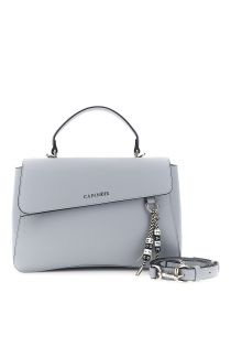 handbag with grainy leather-effect flap and colorful logo charm sky