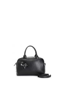 Handbag in smooth synthetic material padded with puffy effect with sequin flower appliqué. bag with a single compartment and an internal zip pocket. zipper closure. bag with shoulder strap.