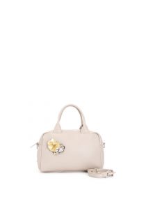 Handbag in smooth synthetic material padded with puffy effect with sequin flower appliqué. bag with a single compartment and an internal zip pocket. zipper closure. bag with shoulder strap.