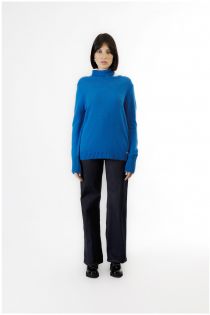 High-neck sweater in wool blend yarn with stockinette knit. porthole-type opening on the left shoulder. perfect to be worn with any combination.