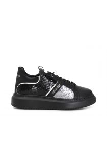 Sneakers with box sole and leather upper enhanced by an interplay of two-tone quilted sequins. Box sole.