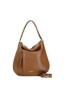 hobo bag with pocket and zip, threaded handle tan