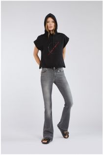 This short gilet is a nice and extremely fascinating garment made of fleece fabric with a hood and logo embroidered on the front. The hems are finished in raw cut for a very trendy and sporty effect