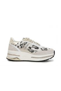 Imitation leather and leather sneakers with leopard print details. Running sole with CN logo on the outer part of the sole.