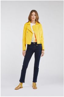 imitation leather bomber jacket with printed lining