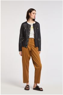 imitation leather crew-neck jacket with buttons black