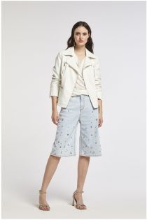 imitation leather studded jacket pearl