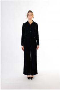 Palazzo fit trousers. made of textured velvet with an elegant iridescent effect. sophisticated model to match with the coordinated jacket or shirt.