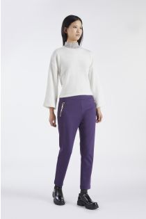 Joggers in stretch fabric. The two-needle stitching in contrasting yarn gives the garment a sporty touch.