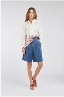 Kaftan-style shirt in cotton muslin embellished with embroidered detail at the hem. A pattern of stitching and slight gathers create delicate movement.