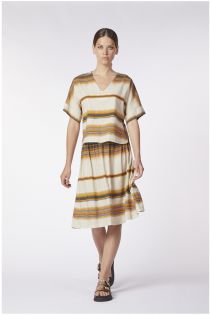 kimono sleeve blouse in printed linen-blend fabric shaded line