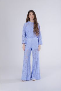 Lace palazzo pants with an elasticated waist at the back elegant and feminine. the wide fit slims the figure offering comfort and style ideal for formal wear evening wear or sophisticated looks. the model is 175 cm tall and wears size s. fit: regular.