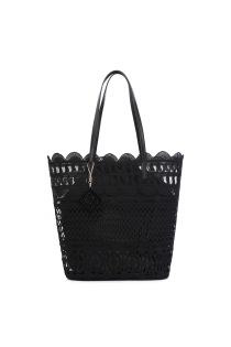 Lace shopper with cotton inner pouch. leather-effect handles and tone-on-tone pendant. perfect to bring colour to any summer look.