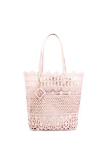 Lace shopper with cotton inner pouch. leather-effect handles and tone-on-tone pendant. perfect to bring colour to any summer look.