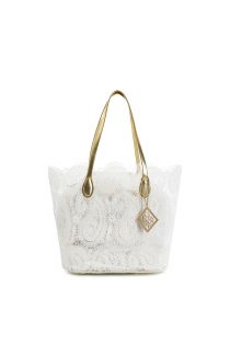 Lace shopping bag in various shades and matching inner bag embellished with personalised cafènoir pendant.