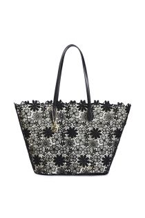 lace shopping bag with metal charm black