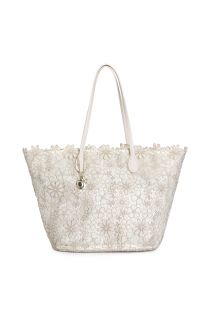Lace shopping bag with fabric lining leather-effect handles and metal charm with chain. refined elegance and ideal capacity for casual and chic looks