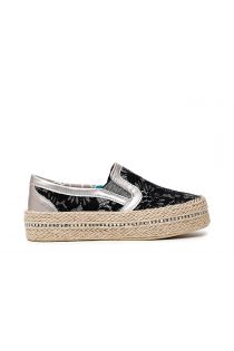 Slip-on shoes with rope sole decorated with a delicate rhinestone insert. Lace upper.