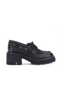 Women's lace-up nubuck leather loafers with a lug sole, 5.5 cm heel, and 2.5 cm platform. Leather-lined interior with comfort insole. Bold style for a casual, urban look.