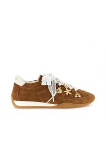 Women's lace-up running shoes in perforated suede. lace laces and removable gold nautical-themed charms. fabric lining leather insole 2 cm rubber sole. playful and ultra-glamorous look.