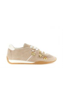 Women's lace-up running shoes in perforated suede. lace laces and removable gold nautical-themed charms. fabric lining leather insole 2 cm rubber sole. playful and ultra-glamorous look.