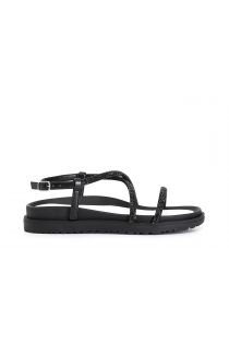 Criss-cross sandals with rhinestones arranged on very thin straps.