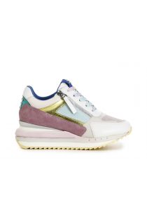 Lace-up sneakers with side zip on a two-tone wedge with a sinuous and dynamic shape.