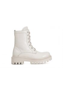 Women's leather lace-up ankle boot. leather insole. rubber lug sole and 40mm heel.