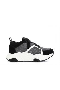 laced running shoes with fabric black metal gun