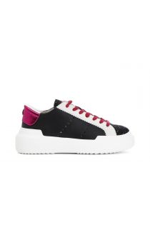 Women's sneakers with glitter and mirror details on the reinforced heel and patterned lace-up. the insole is leather.