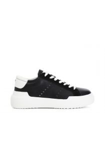 Women's sneakers with glitter and mirror details on the reinforced heel and patterned lace-up. the insole is leather.