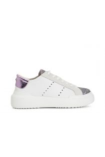 Women's sneakers with glitter and mirror details on the reinforced heel and patterned lace-up. the insole is leather.