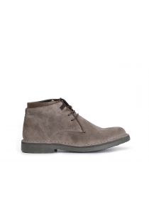 Men's lace-up suede ankle boot with leather trim. upper stitched to the sole. leather insole.
