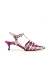 laminated faux leather pumps with side straps and buckle multi fuchsia
