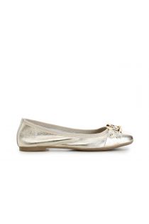 laminated leather ballet flat with decorative chain light gold