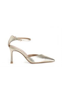 laminated leather décolleté with ankle strap light gold